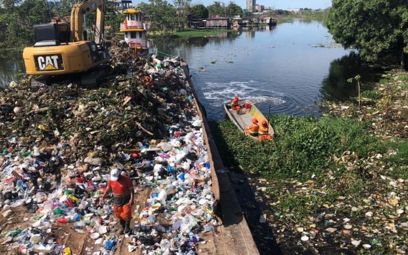 Mesmo com a coleta domiciliar regular, a desarticulação de lixeiras viciadas e as ecobarreiras instaladas nos principais igarapés da cidade, o lixo continua chegando ao rio. Grande parte dele vem das calçadas, becos e terrenos baldios, onde o descarte irregular se tornou prática comum.