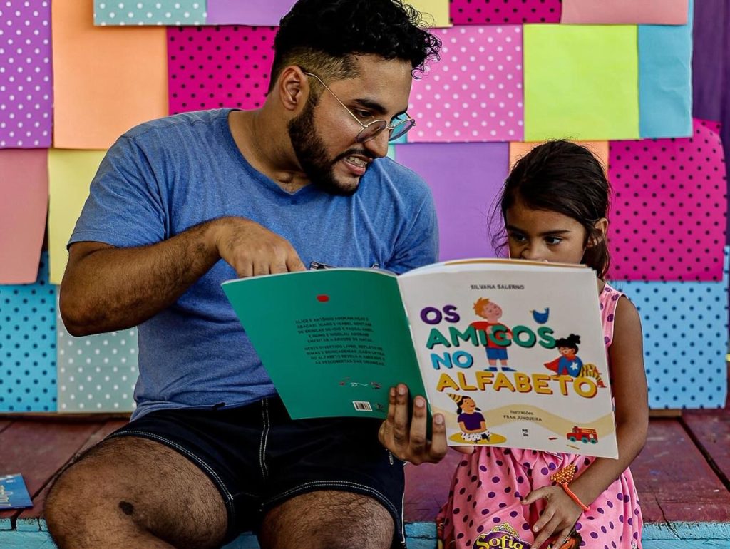 Todo o acervo utilizado nas atividades foi construído por meio de campanhas de doação de livros, mobilizando amigos, apoiadores e pessoas interessadas em contribuir com a formação de novos leitores.