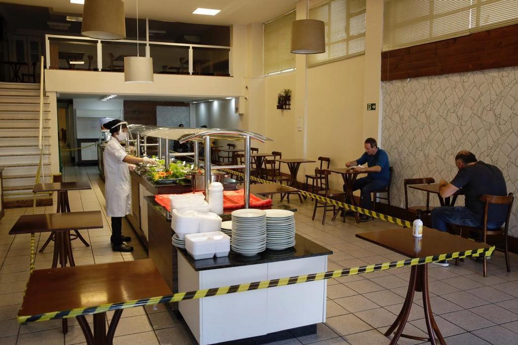 Restaurantes, cafés, padarias, fast-food e self-service, para consumo no local, com lotação máxima de 50%, brinquedotecas fechadas e funcionamento no máximo até 22h e às 23h, não podem mais ter clientes;