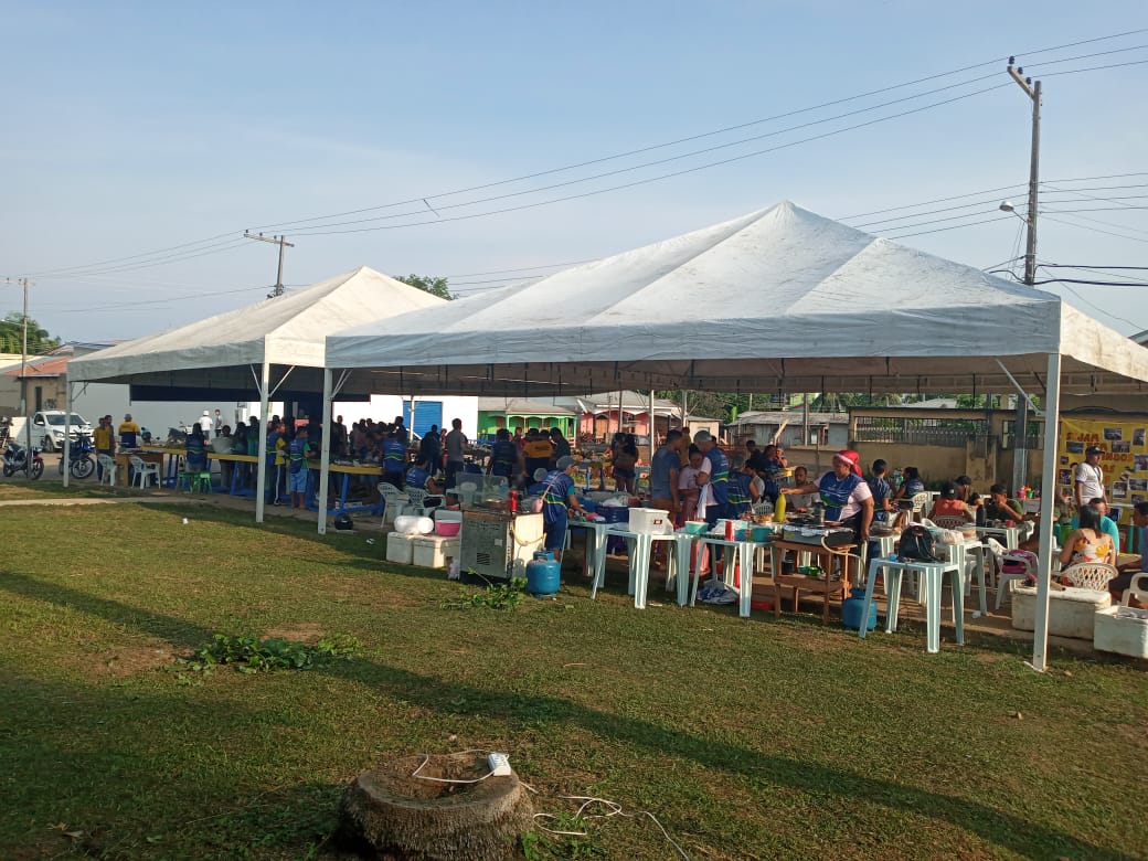 A ação foi viabilizada pelo kit feira, fornecido pela ADS à unidade local do Idam em Pauini. O kit inclui duas tendas, 50 jogos de mesas com cadeiras, aventais e bonés para feirantes, dois expositores de pescado e um totem para álcool em gel.
