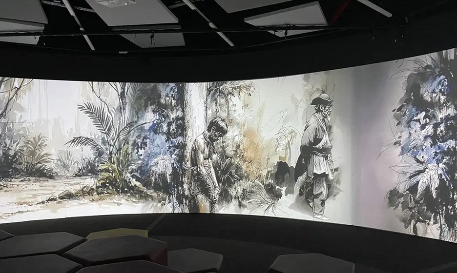Combinando tecnologia imersiva, projeções 360º, iluminação interativa e aromas da floresta, a mostra recria o ambiente amazônico e conduz o visitante por uma jornada sensorial que une o passado e o presente das comunidades indígenas.